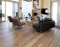 Gray wood floors, like the DuChâteau Atelier Series Driftwood White, Driftwood Grey, Sea Smoke, and Tidal Edge, will continue to be popular, for they fit well in contemporary and transitional design homes.